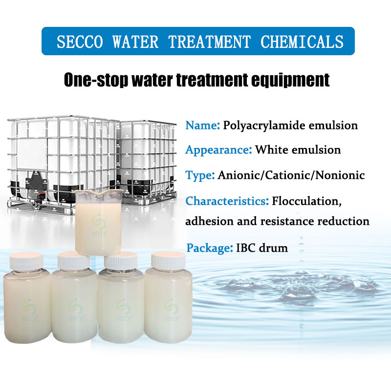 Nhũ tương polyacrylamide được chuẩn bị bằng cách phân tán hoặc polymerization nhũ tương ngược, đó là một hình thức của chất lỏng polyacrylamide có mặt. Bên cạnh các đặc điểm của chất rắn polyacrylamide flocculants, thông qua chuỗi phân tử của các nhóm cực để hấp thụ các chất rắn treo trong các hạt nước, nhảy tương có thể định dạng các flock lớn thông qua cầu giữa các hạt hoặc điện.